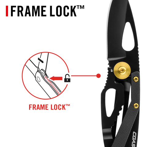Safe, single-handed blade control. Knives equipped with a Frame Lock use the knife’s frame as a locking mechanism and allow you to keep one hand free while opening and closing the knife.