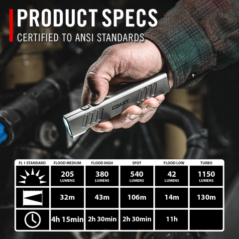 • Light Output (Turbo) 1150 Lumens